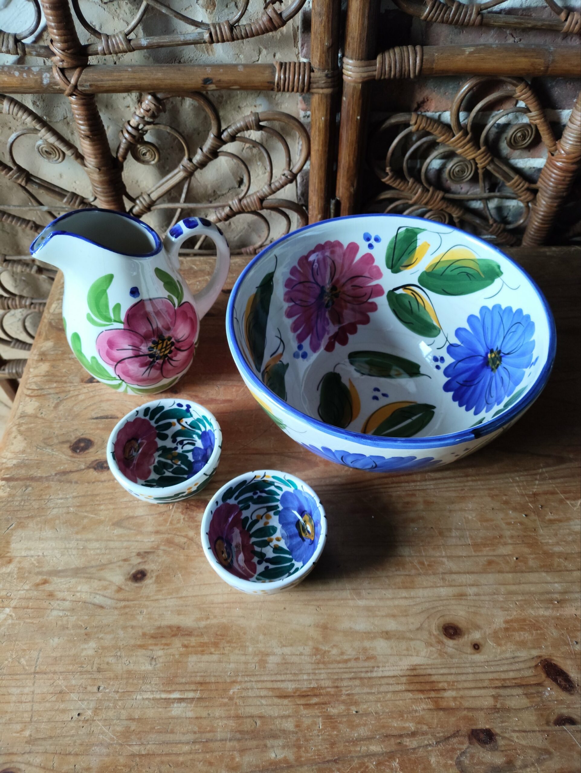 Trio de coupelles traditionnelles d’inspiration roumaine en argile fait main. Motifs folkloriques pour ces bols de style Horezu.